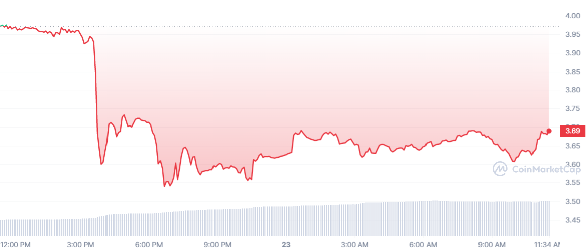 En conséquence, le HT voit rouge aujourd’hui. Le cours Huobi Token est en baisse de 7,18 % sur la journée. Le prix d’échange du jeton est désormais de 3,69 $. Une baisse successive à l’annonce de la Fed, mais qui permet de fermer dignement le top & flop crypto du jour.