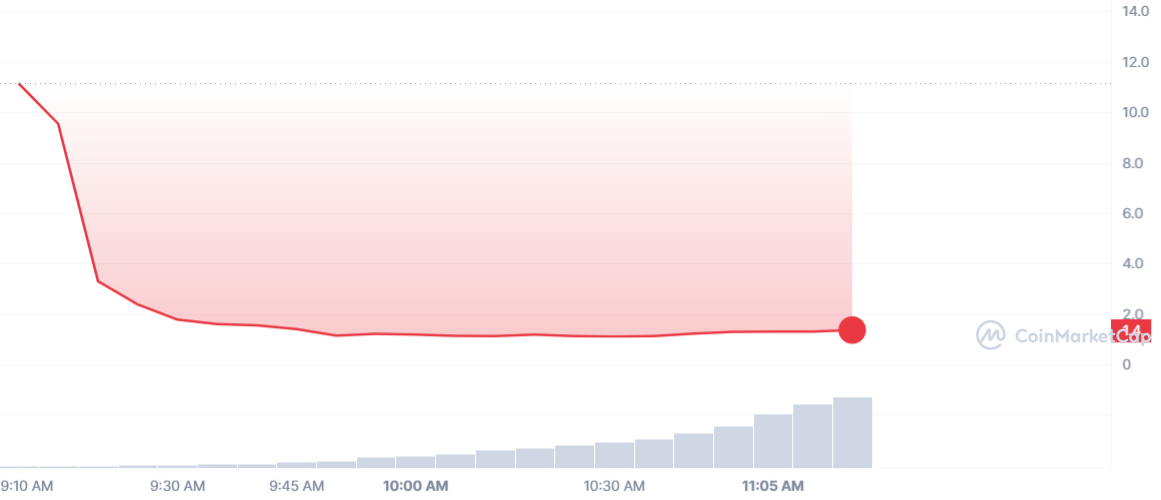 Négociable depuis ce matin, le nouveau jeton a réussit à atteindre un ATH de 13 $ au moment du lancement. Désormais, le cours ARB est cependant tombé six pieds sous terre et s’échange à 1,4 $.