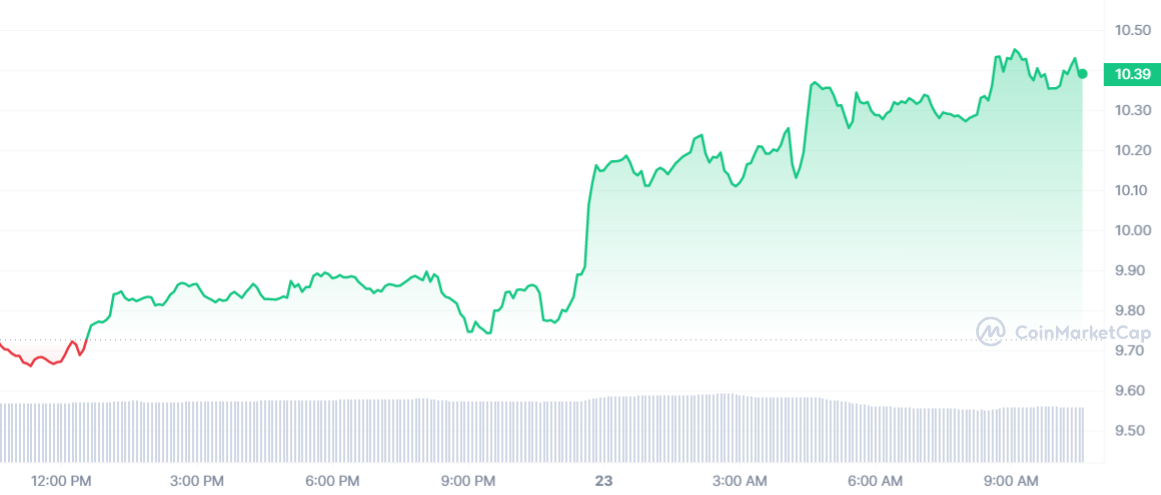 Avec cette évolution positive journalière, le cours NEO est en hausse de 7,35 %. Le jeton s’échange désormais au-dessus des 10 $ ! En effet, puisque chaque pièce vaut 10,39 $.
