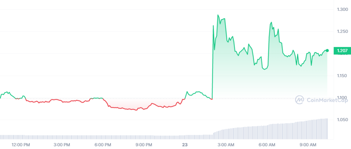 Le cours KAVA est donc encore en hausse aujourd’hui. Malgré un sommet local aux alentour des 1,30 $ sur la journée, il s’échange à 1,20 $ au moment de rédaction. En plus de la meilleure performance pour une crypto top 100, c’est également le seul token a dépassé les 10 % de hausse. Voilà donc un jeton en forme et à la mode, bien que les projecteurs ne soient pas braqués sur lui.