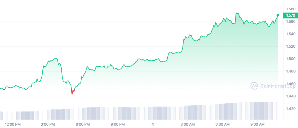 La crypto-monnaie de ThorChain, est en hausse sur les dernières 24 heures. Le cours RUNE a donc gagné 7,70 % et s’échange désormais à un prix de 1,57 $. Une belle performance alors que le marché crypto semble enfin se réveiller.