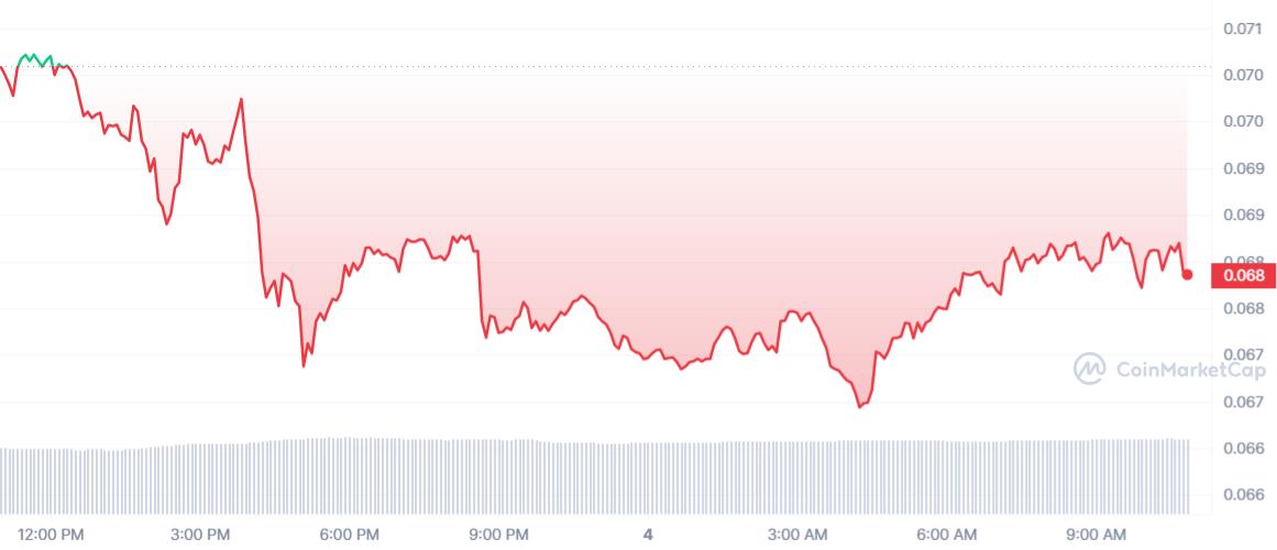 Le cours HBAR est de 0,068 $, en baisse de 2,75 % sur la journée. Suffisant pour une troisième place.