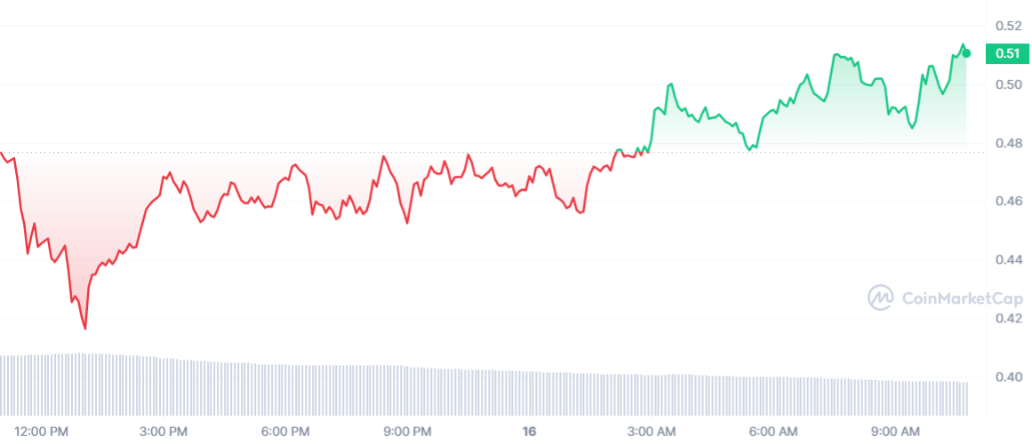 La montagne russe AGIX est en hausse de 6 % aujourd’hui, avec un prix de 0,51 $ pour chaque jeton. 🤖 Encore merci GPT-4 ?