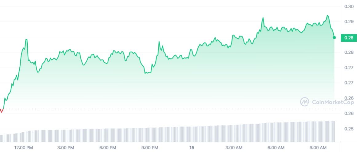 Malgré cela, le cours 👍🏼 CFX est encore loin de ses sommets annuels. Cependant, la hausse du jour est encourageante avec 10 % de gagnés au cours des dernières 24 heures. Le cours du jeton est maintenant de 0,28 $. Une première place synonyme de retournement de tendance ? Les prochains jours nous le dirons.
