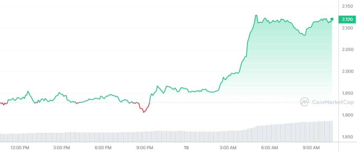 Le troisième membre du top crypto du jour est également dans la même lignée que le GRT et le CFX. En effet, malgré la hausse journalière pour le marché des cryptomonnaies, ces trois jetons se détachent avec des performances quasi identiques. Le jeton de Lido DAO est donc troisième, également très proche des 10 % de hausse.