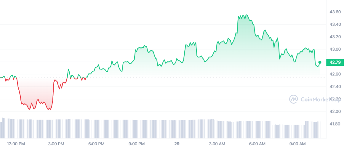 Le cours OKB est toutefois toujours en baisse sur les 30 derniers jours. Le temps de l’ATH de la mi-février semble loin. OKB est en hausse de 0,60 % aujourd’hui, avec un prix de 42,79 $.