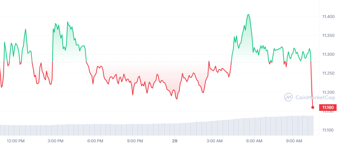 Le cours ATOM est en baisse sur la journée et s’échange à 11,16 $. Toutefois, la baisse est contrôlée puisque le jeton de Cosmos n’est en baisse que de 0,67 %.