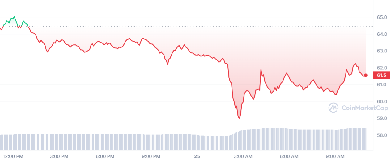 Décidément, rien ne vas plus chez Compound et cela se confirme bel et bien sur le cours COMP. Au moment de rédaction, la pièce s’échange à 61,39 $ après une nouvelle perte de vitesse de 4,49 %.