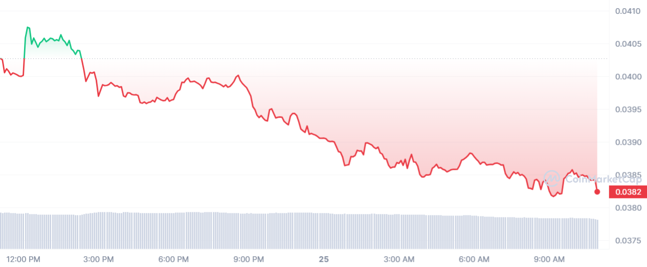 Un CSPR désavoué mène donc la dragée haute, mais pour les baissiers aujourd’hui. Finalement, la chute de 5,27 % entraine le cours CSPR à 0,038 $.