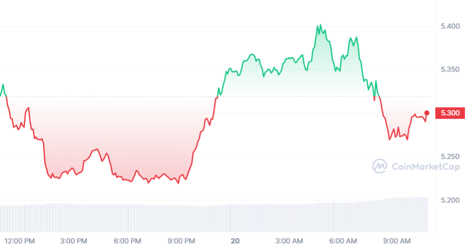 Le cours FXS est en baisse de seulement 0,38 % sur les dernières 24 heures, et se stabilise à un prix de 5,30 $.