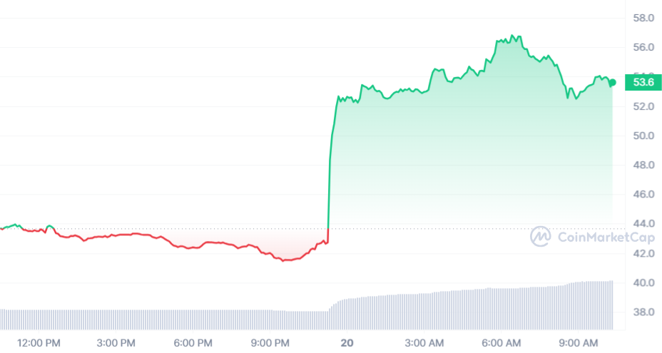 Increvable, le cours BSV a même appuyé sur l’accélérateur aujourd’hui avec une hausse de 21,83 %. Le BSV a du jump et le démontre encore une fois. Avec un prix de 53,6 $, pas étonnant qu’il s’agisse du membre le plus important du groupe des cryptos qui rayonnent cette semaine.
