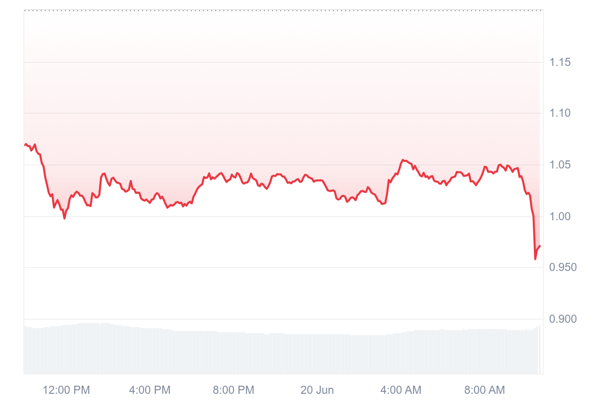 À cause d’une nouvelle baisse, le jeton retombe même sous le dollar qu’il arrivait pourtant à conserver depuis de nombreuses semaines. En raison d’un retracement de 8,38 %, l’actif se négocie maintenant à 0,97 $.