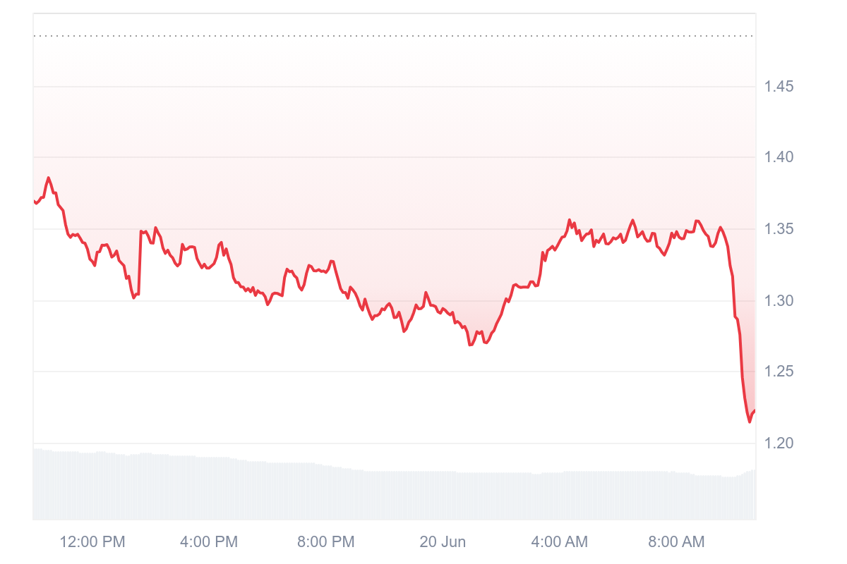 Mais tout n’allait pas si mal pour le SPX jusqu’à une fin de journée désastreuse qui a fait retomber le prix de l’actif sous les 11,18 %. En conséquence, le prix de l’altcoin est retombé à 1,22 $.