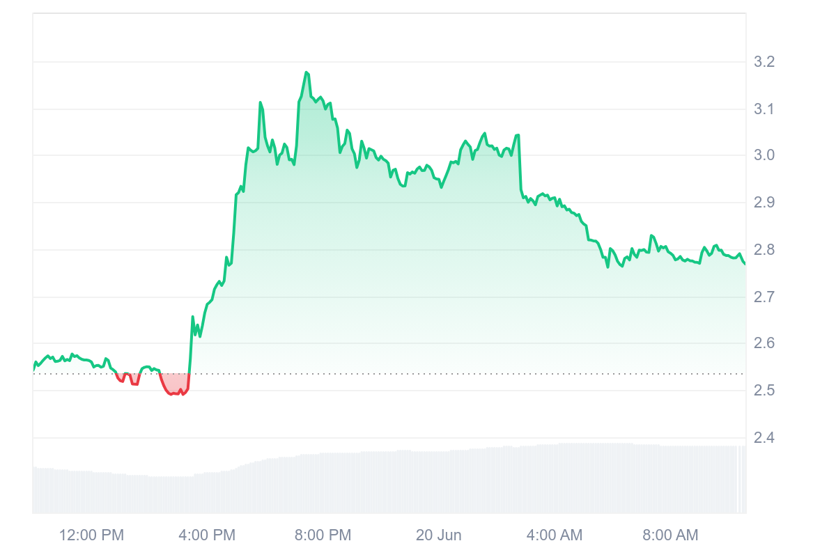 Un temps au-dessus des 3 $, le jeton IP est finalement repassé à 2,76 $. Malgré tout, sur la journée, la hausse est bien confirmée avec un gain de 7,78 %.