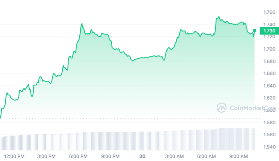 C’est une réussite pour le TON aujourd’hui qui arrive à décoller de 8,49 %. Grâce à cette belle évolution, le jeton de Toncoin arrive à atteindre les 1,73 $.