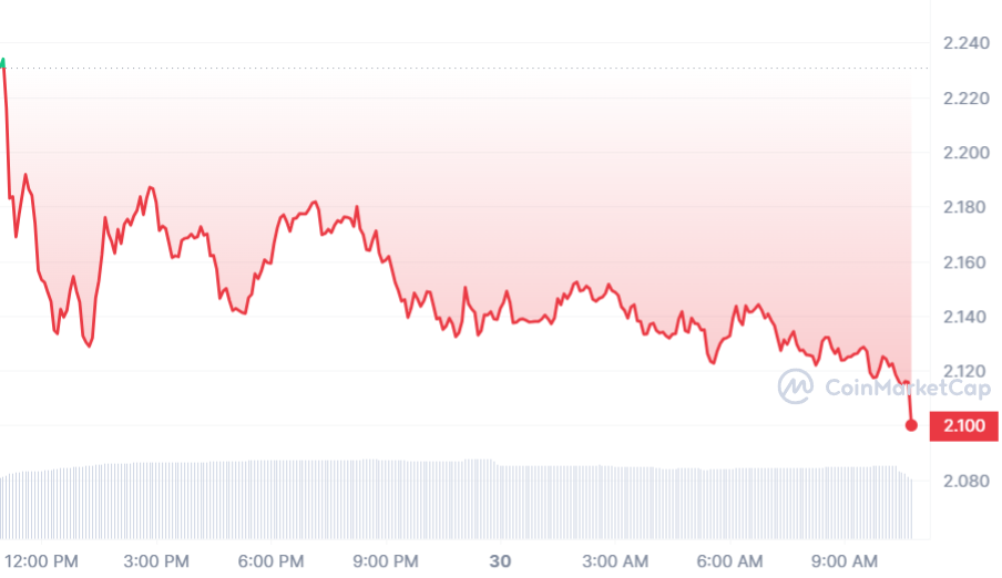 Le cours DYDX a donc enclenché la marche arrière ce mercredi et commence à rebrousser chemin. Au moment de rédaction, la pièce vaut 2,10 $ en ayant perdu 5,80 %.