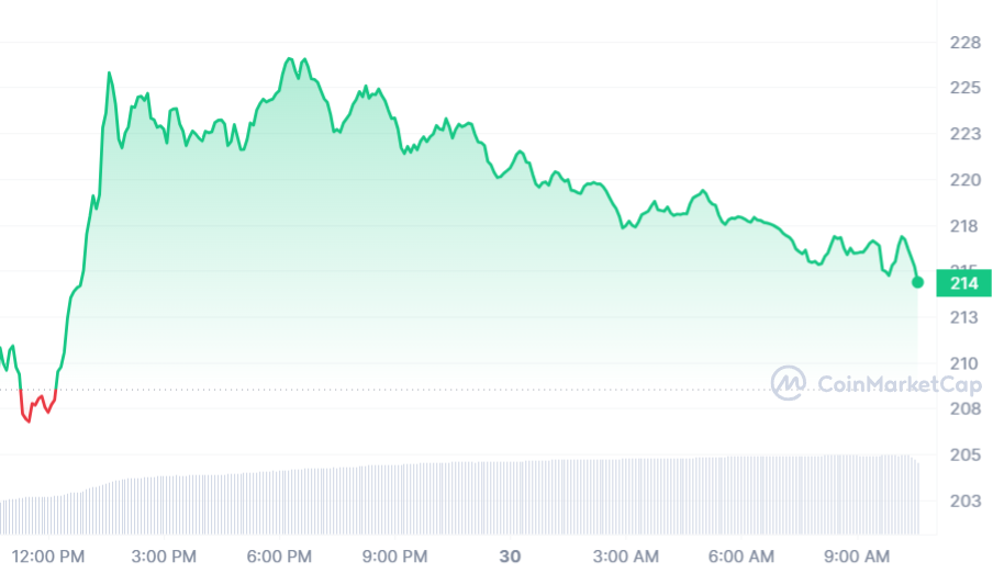 Malgré tout, le cours BCH reste encore positif. Cependant, la dégringolade pourrait tout à fait se poursuivre et propulser la pièce du côté des flops. Au moment de rédaction, la pièce s’échange à 214 $ avec une évolution positive de 1,97 %.