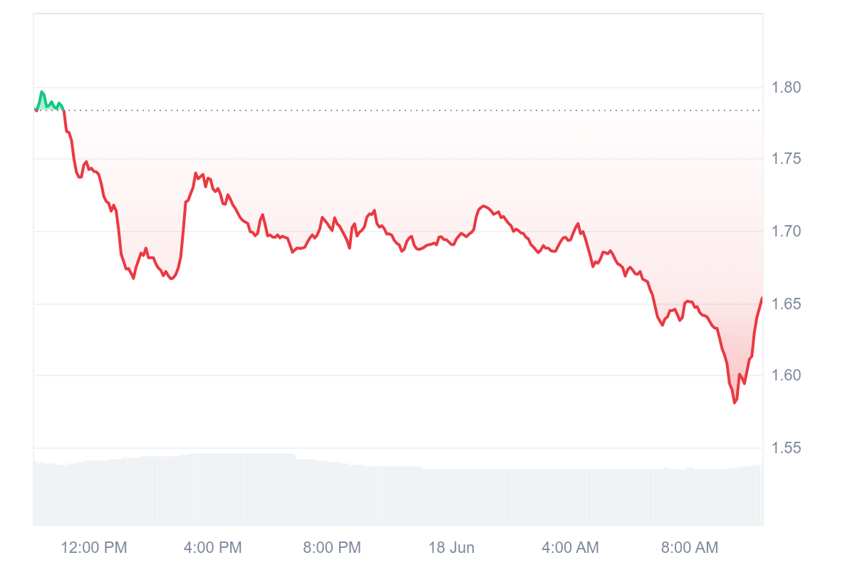 Le jeton est dans le rouge et accuse une nouvelle baisse avec une perte de 7,39 %. Résultat des courses : VIRTUAL s’éloigne des 2 $ avec un prix d’échange de 1,65 $ au moment de la rédaction.