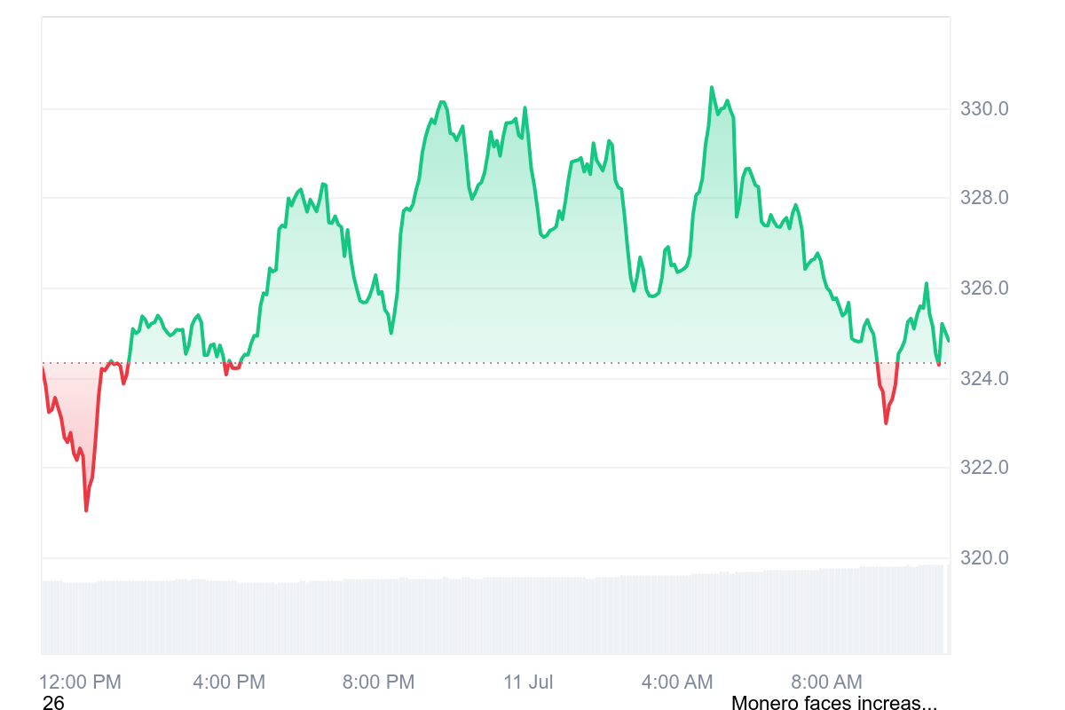 Le cours du XMR est dans le vert et enregistre une hausse de 0,55 %. Peu d’impact au niveau du prix avec la pièce de Monero qui vaut désormais 324,81 $.