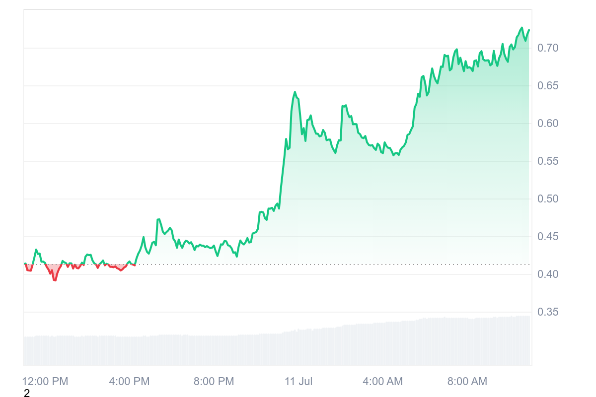 Le jeton natif de MemeCore (M) en profite avec une hausse qui laisse les autres ébahis. Et pour cause, le MemeCore gagne 81,47 % et se négocie désormais à 0,746 $ avec un nouvel ATH en poche. Journée complètement réussie pour le petit nouveau du groupe.
