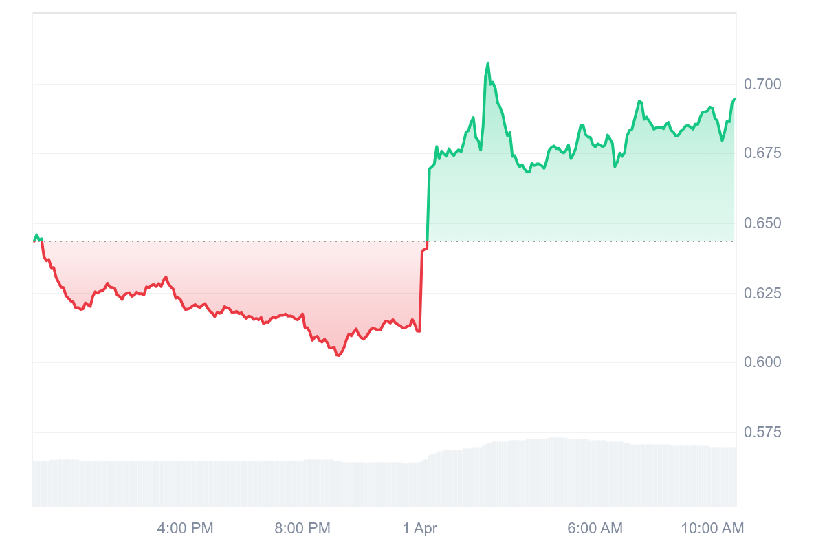Après la hausse de la veille, EOS en remet une couche avec une performance très intéressante de 7,62 % qui fait regagner la pièce en l’amenant à 0,694 $.