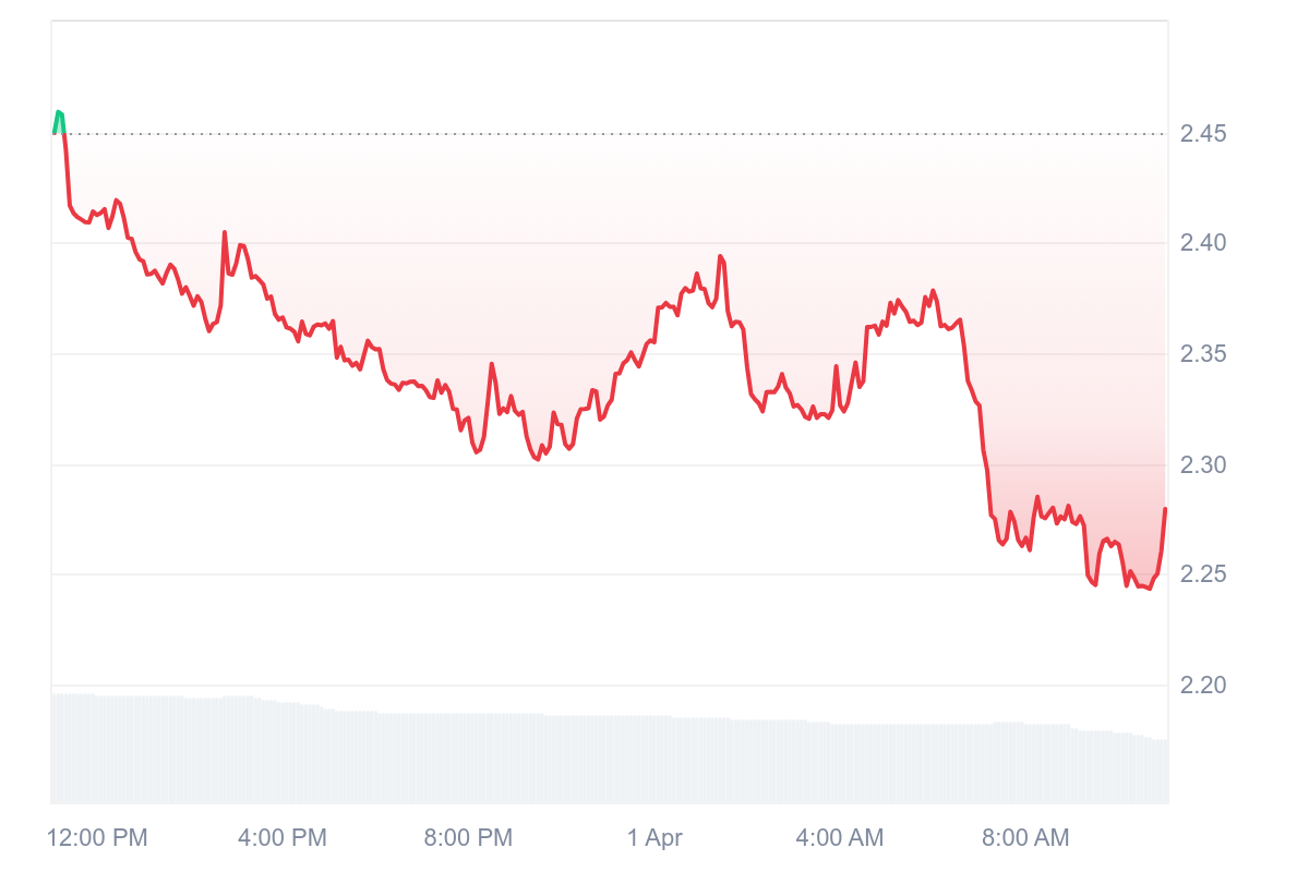 Le cours du FORM termine donc sa journée dans le rouge avec un retracement de 6,87 % qui fait retomber le prix de l’actif à 2,27 $.