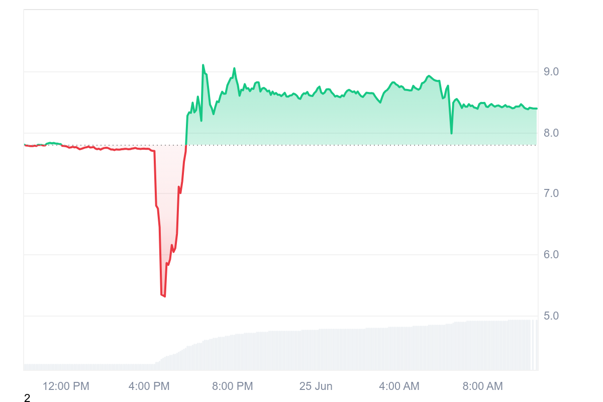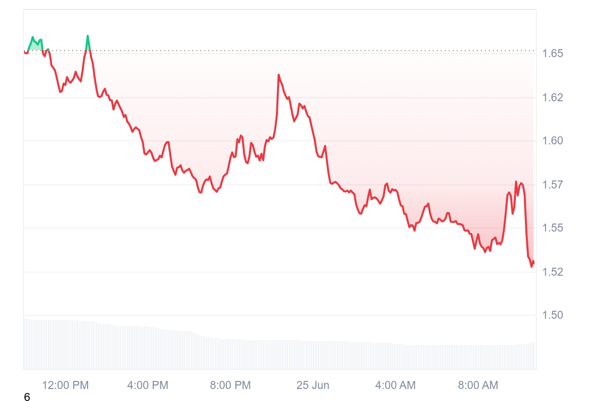 VIRTUAL passe lui aussi à la trappe avec un retracement désagréable pour ses investisseurs. La pièce recule de 7,66 % et le prix tombe à 1,53 $.