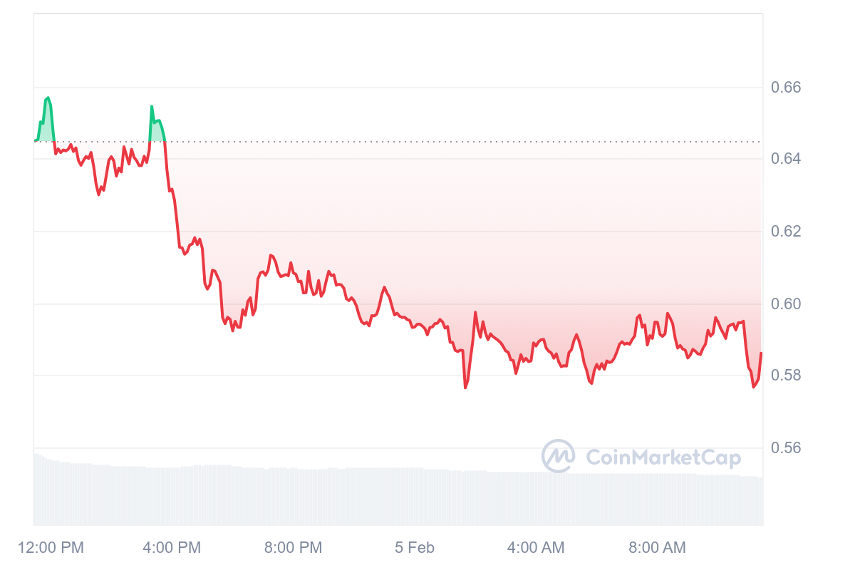 La cryptomonnaie ENA a subi un retracement significatif avec une perte de 9,11 % qui fait retomber l’actif sous les 60 centimes.