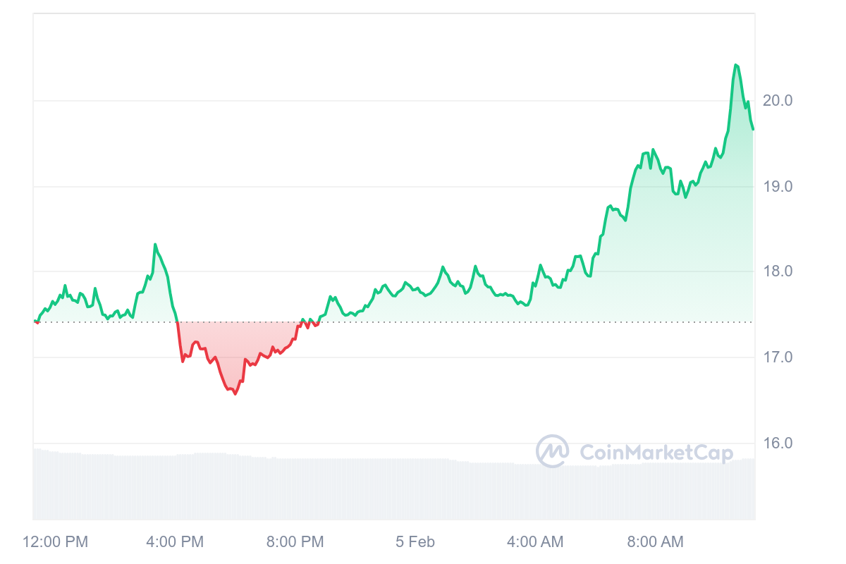 Le cours du TRUMP est même en forte hausse ce mercredi avec un gain journalier de 12,76 %. L’incidence sur le prix est réelle avec un jeton qui tourne de nouveau autour des 20 $.