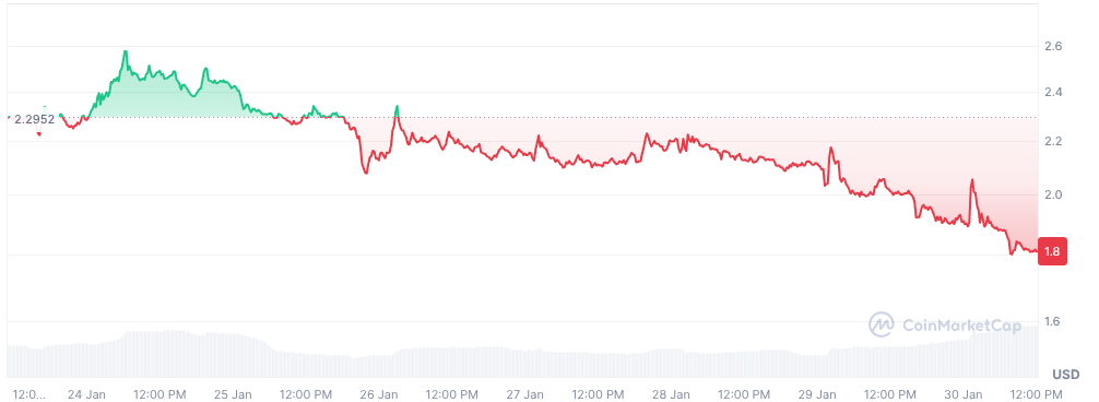 STABLE suit de près avec une progression de 40,28% sur sept jours, soutenue par une explosion de volume de 155 %. L’anticipation de la mise à jour mainnet v1.2.0, prévue le 4 février, simplifie les mécanismes de gaz, tandis que les indicateurs techniques comme le RSI et le MACD confirment un momentum haussier clair.