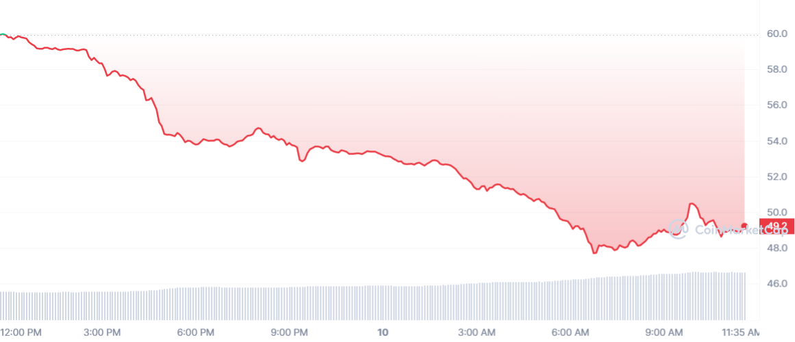 La cryptomonnaie DASH a passé une très mauvaise nuit. En effet, l’actif a chuté massivement, de 18 %. En conséquence, la pièce est passé en dessous des 50 $. Désormais, le jeton s’échange à 49.17 $.
