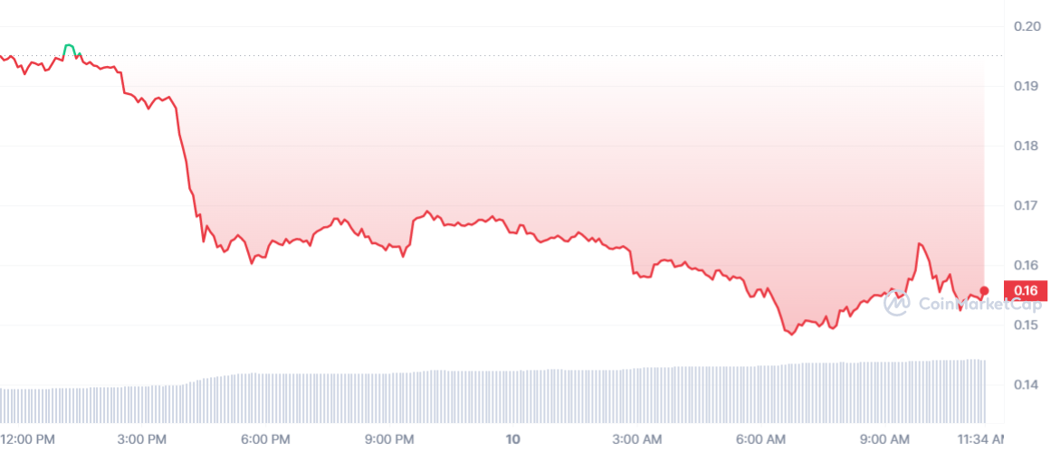 Avec une baisse de 20 % sur la journée, le CFX est le seul jeton à réaliser une telle prouesse aujourd’hui. Déjà en baisse hier, la crypto prolonge juste l’hémorragie. Désormais, le cours CFX est de 0,15 $.