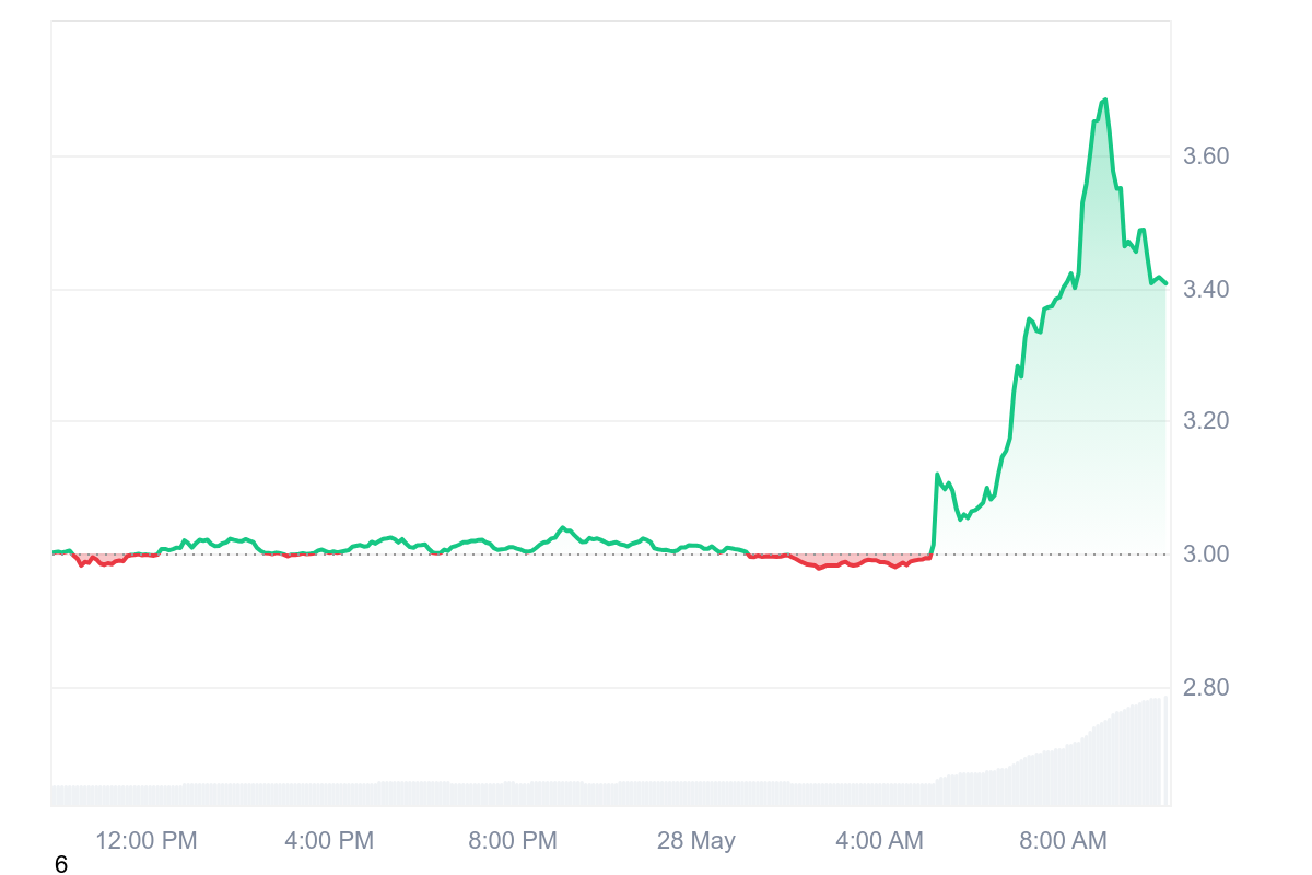 Même si la journée est belle pour le TON, une petite déception va sans doute persister pendant la soirée. Le jeton se négocie tout de même à 3,41 $ après cette hausse de 13,61 % en moins de 24 heures. Finalement, c’est ce que le jeton nous a montré de mieux ces dernières semaines.