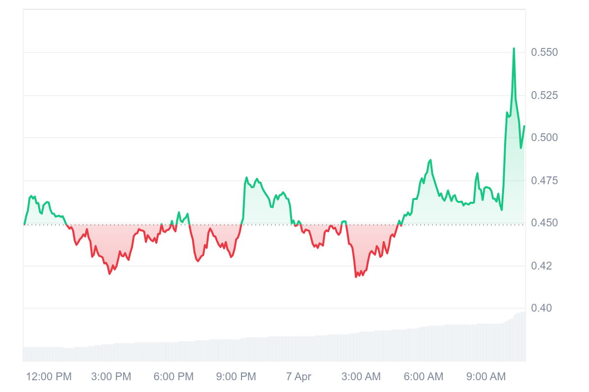 Ce dernier signe d’ailleurs le meilleur rebond possible à la journée avec un gain de 12,16 % qui fait remonter le FARTCOIN au-dessus des 50 centimes.