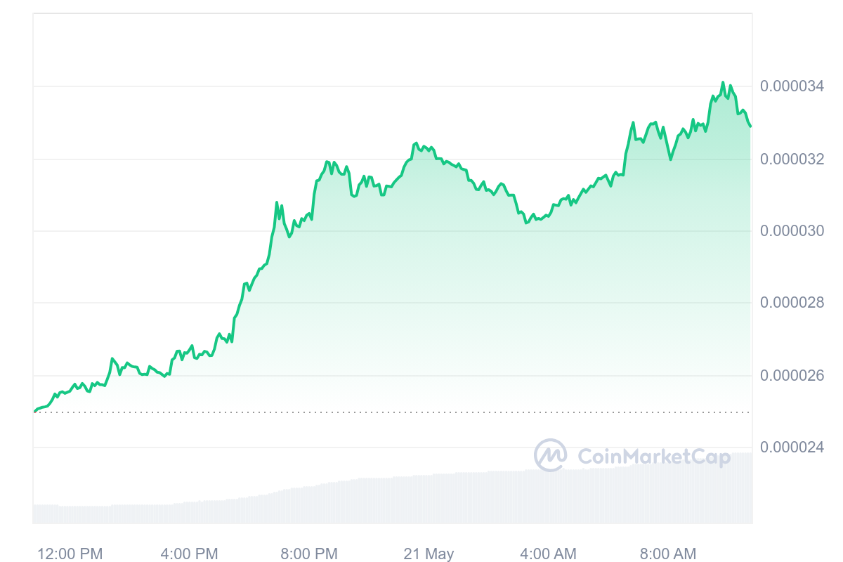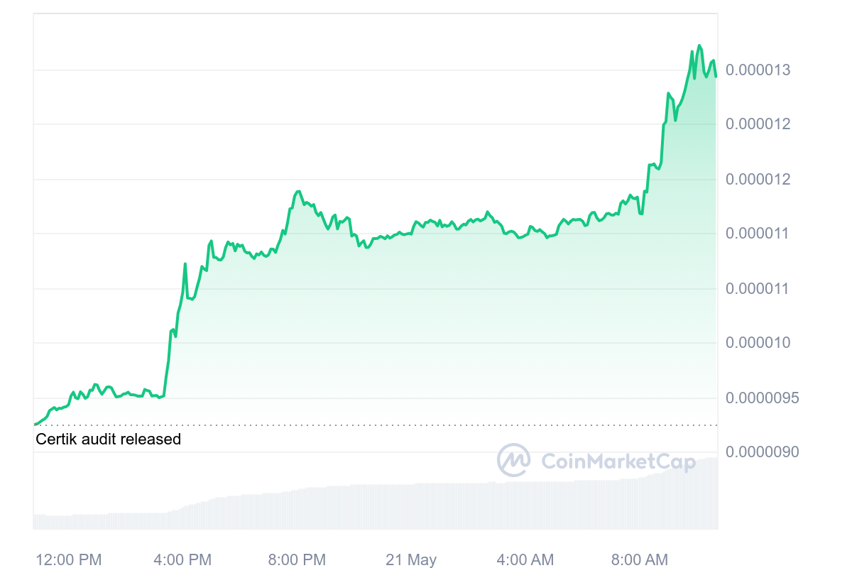 Cette fois-ci, la grenouille du marché crypto a décoller sans regarder derrière en gagnant 34,76 %. Dorénavant, le prix du jeton est fixé à 0,000012 $ alors que son nouvel ATH est un peu plus haut.