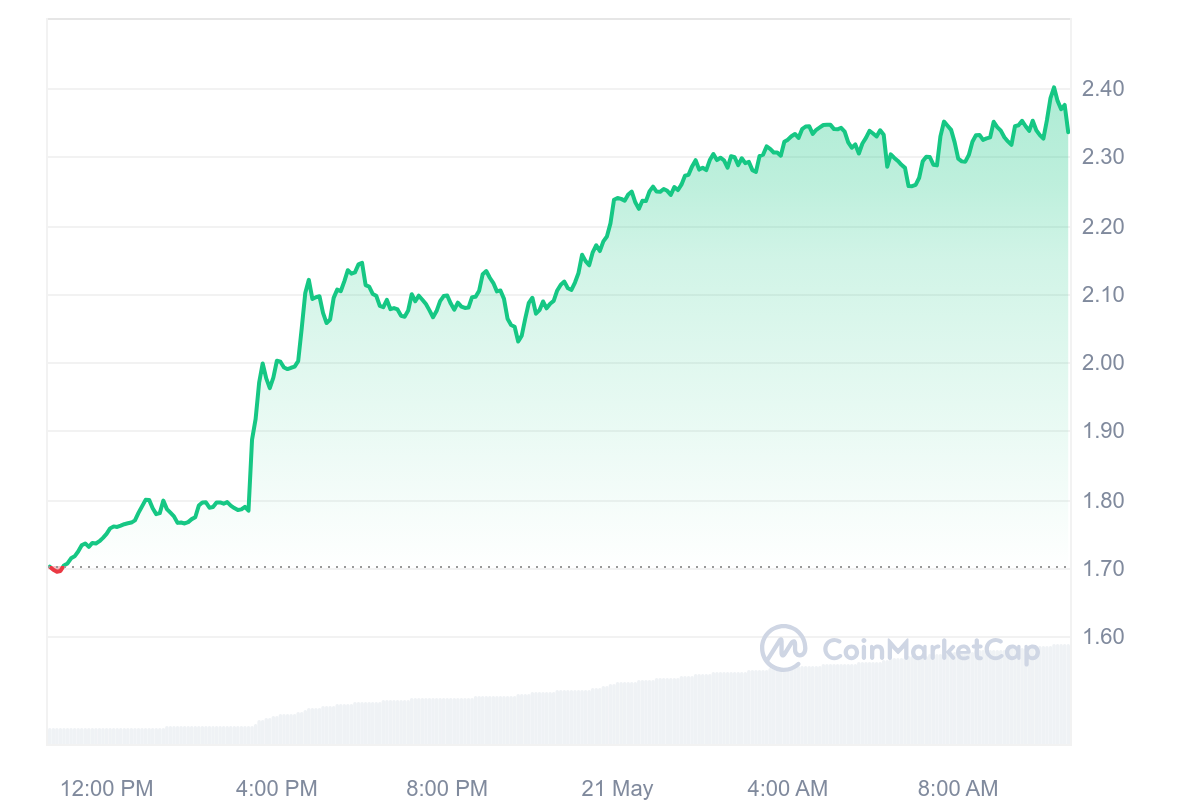 Le cours LDO est en forme aujourd’hui et il nous le démontre. La performance du jour pour le jeton de Lido est d’ailleurs une des meilleures jamais vues chez le top & flop crypto. L’actif a gagné 37,32 % en seulement 24 heures et se revalorise à 2,34 $.
