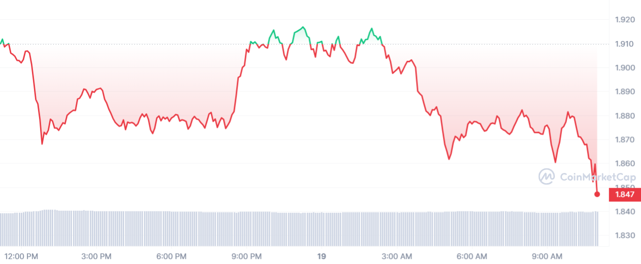 Le cours RNDR est finalement en baisse de 2,64 % et s’échange maintenant à 1,86 $.