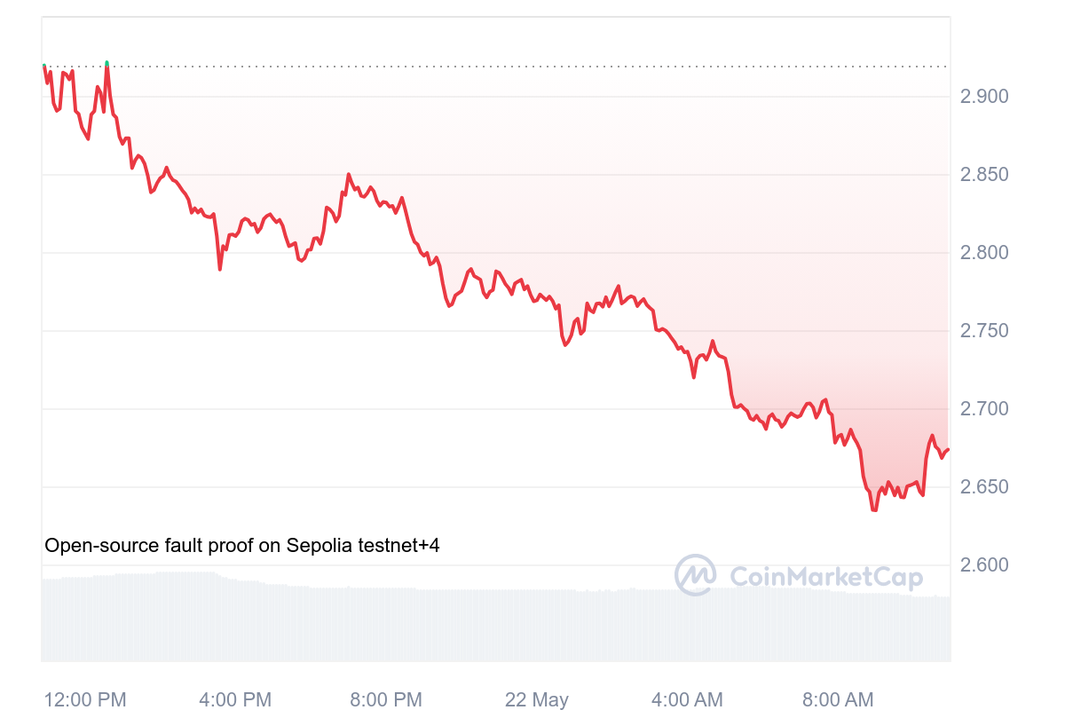 SponsoredA cause d’une chute progressive, le cours OP a perdu un total de 8,03 % sur les dernières 24 heures. Désormais, la pièce est même valorisée à 2,68 $.