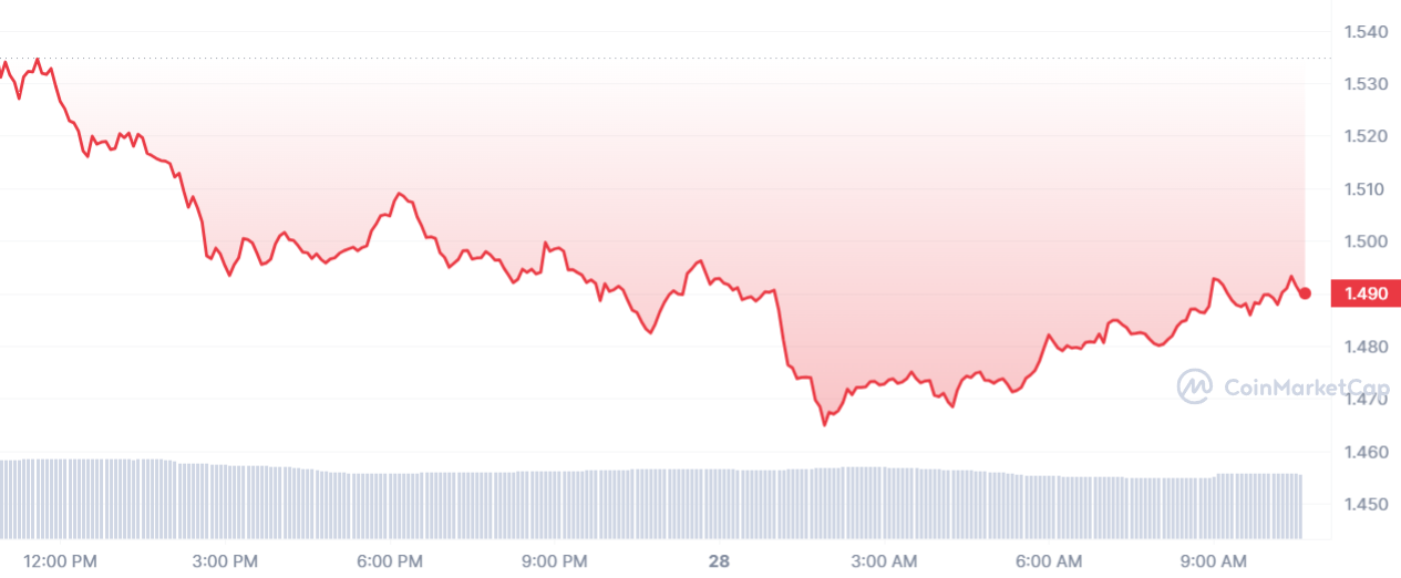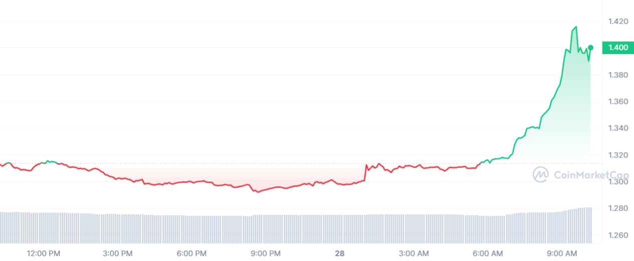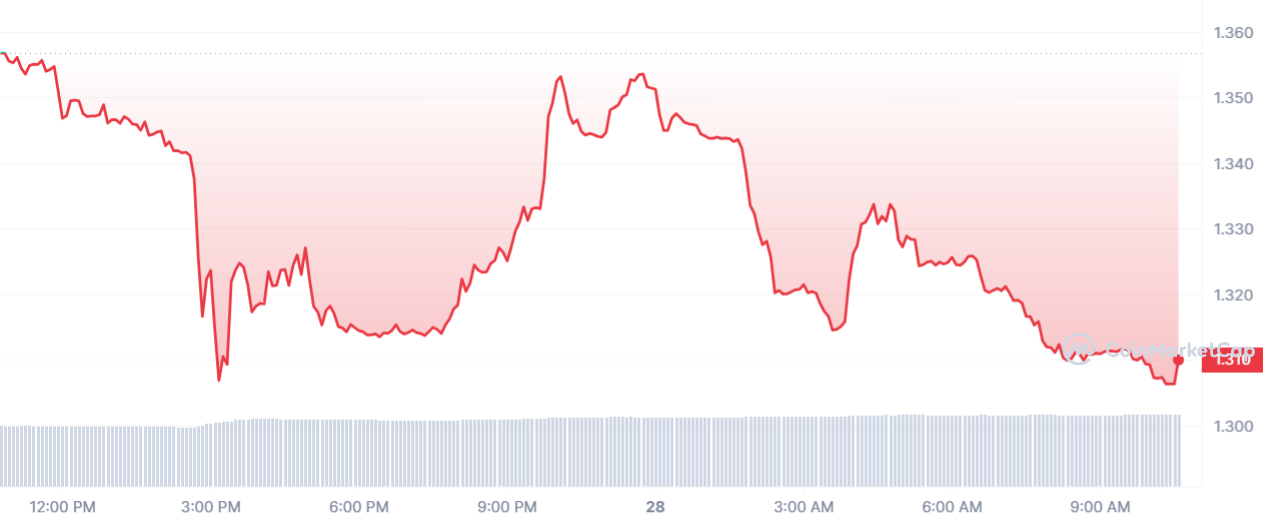 Avec cette nouvelle baisse, le jeton TON maintient sa dynamique, sa place sur le podium et sa couleur teintée de sang. Au final, c’est 3,93 % qui est perdu sur une journée, et un prix qui s’abaisse tranquillement mais surement à 1,30 $.