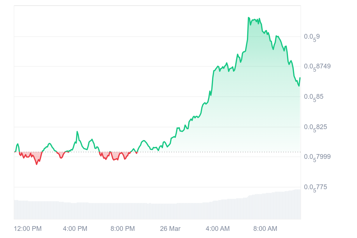 Le PEPE vient parfaire sa condition tout comme celle des meme coins qui retrouvent les sommets. Le meme coin se négocie désormais en hausse de 7,60 % à un prix de 0,0000086 $.