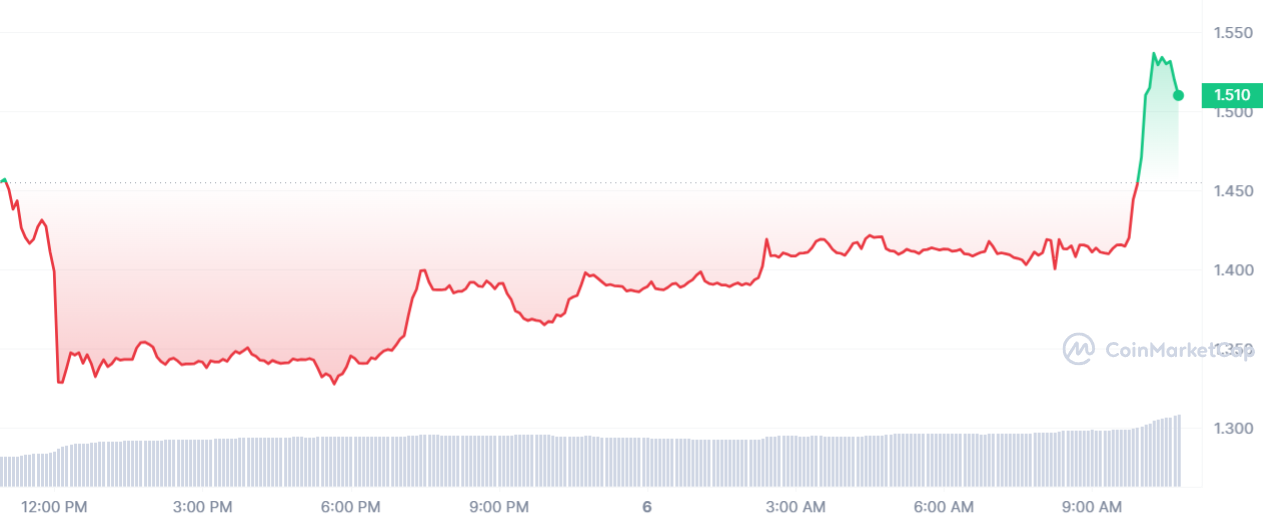 Le cours OP est maintenant en hausse de 4 % sur le début de la journée. Avec cette hausse encourageante, le prix de chaque pièce est de 1,50 $.