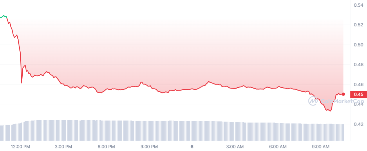 Même si la journée est très horizontale pour le cours MANA, le cours affiche toutefois une baisse de 14,39 % sur les dernières 24 heures. Décidément, le metaverse a été frappé de plein fouet par cette liste communiquée par la SEC. Actuellement, le cours MANA s’échange à 0,45 $.
