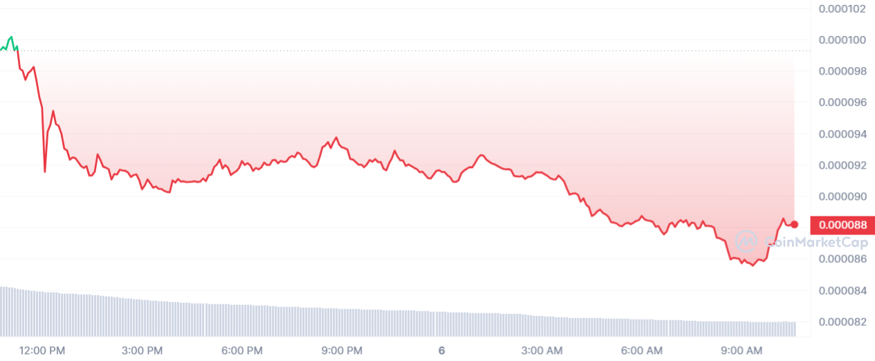 Sur les dernières 24 heures, le cours 👎 LUNC est de nouveau en baisse avec 11,74 % de perdus. Les journées sombrent se succèdent de nouveau et tout ce qui avait été gagné a déjà été reperdu. Désormais, la pièce de Terra Classic s’échange à 0,000087 $, et a de nouveau 4 zéros à boucher après la virgule.