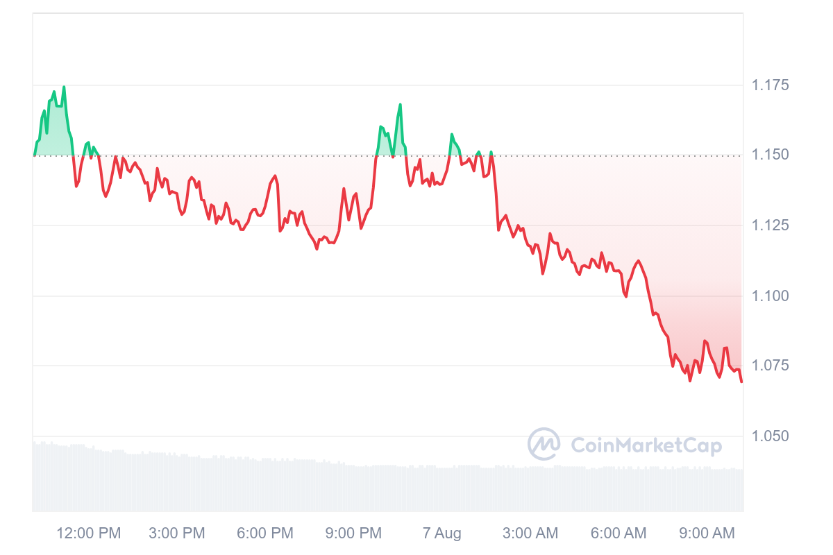 SponsoredSur les dernières 24 heures, la baisse a encore frappé, avec une perte de vitesse significative de 6,18 %. Désormais, le LDO va devoir lutter pour se maintenir au-dessus du dollar.