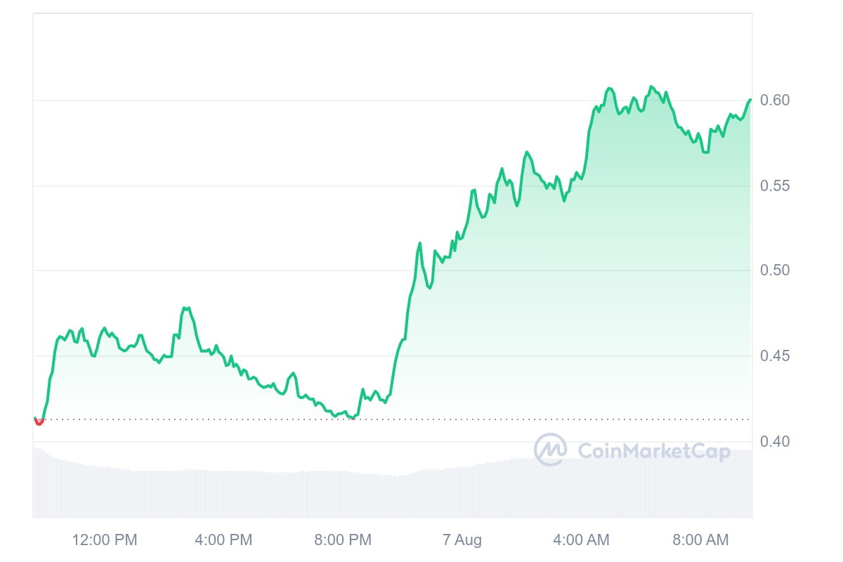 Sur les dernières 24 heures, le meme coin de Solana a laissé loin derrière la concurrence du marché crypto. Le deuxième n’a pas à rougir de sa performance, mais tout de même, l’écart est là ! POPCAT gagne donc 44,90 % et s’échange maintenant à 0,60 $.