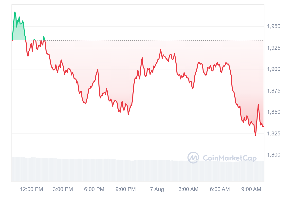 Avec cette dernière chute modérée (5,38 %), le cours du jeton de Maker (MKR) est sur une pente négative et retombe à 1 832 $.