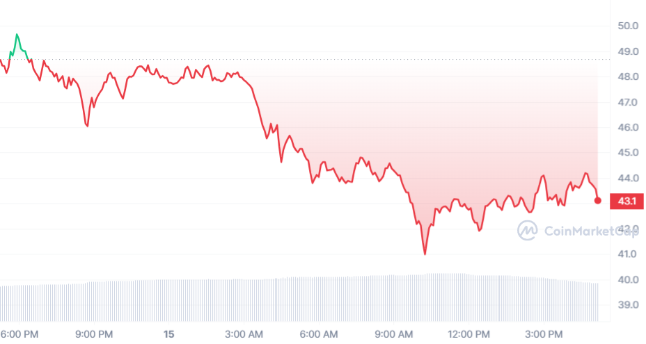 Après son ATH de 52,75 $, Injective a donc aussi connu un beau retracement de cours. Le jeton INJ s’échange au moment de rédaction à 43,10 $ après sa perte de 11,27 %.