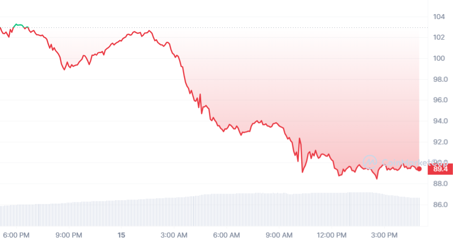 La réussite échappe au BSV qui malheureusement n’a connu que le rouge aujourd’hui. La pièce accuse un fort retracement, avec une perte de 13,67 %. Désormais sous les 100 $, la pièce peut s’échanger à 89,4 $.