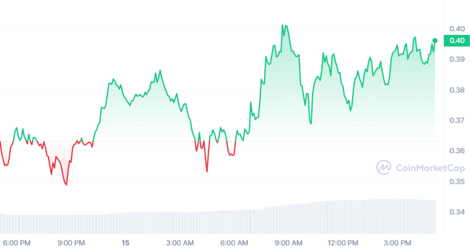 Avec un prix de 0,39 $ au moment de rédaction, on remarque instantanément que la hausse, c’est par ici ce vendredi ! Au fil de la journée, la pièce a réussi à dépasser les 8 %.