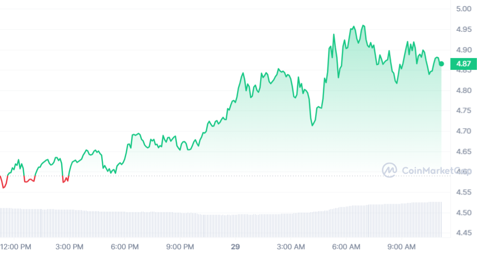 Sur les dernières 24 heures, le cours du WLD est en hausse de 6,17 % et se rapproche enfin des 5 $. Malgré tout, ce n’est pas encore tout gagné pour Worldcoin puisque le prix est encore très en retrait par rapport à l’ancien ATH.